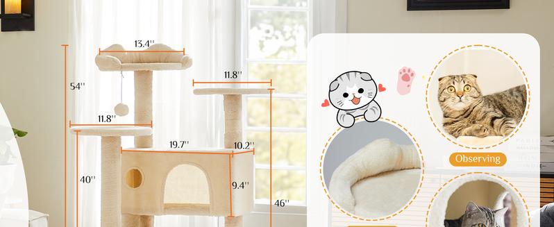This Cat Tree is an idealplayground for your feline friend! With three climbableplatforms, your kitten can unleash their inner adventurerand explore to their heart's content. And when it's timeto rest, the two cozy cat condos provide a private, safeand warm space for your cat to curl up and relax.γCat's Entertainment Hubγ